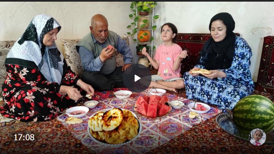 پخت نان در تنور گلی صبحانه روستایی با هندوانه