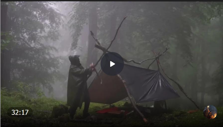 کمپینگ انفرادی در باران شدید استراحت در پناهگاه چادر، همراه با صدای طبیعت (ASMR)