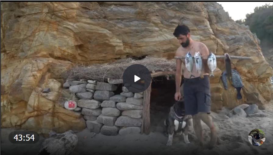 کمپینگ و ساخت پناهگاه چوبی در کنار غاری ساحلی