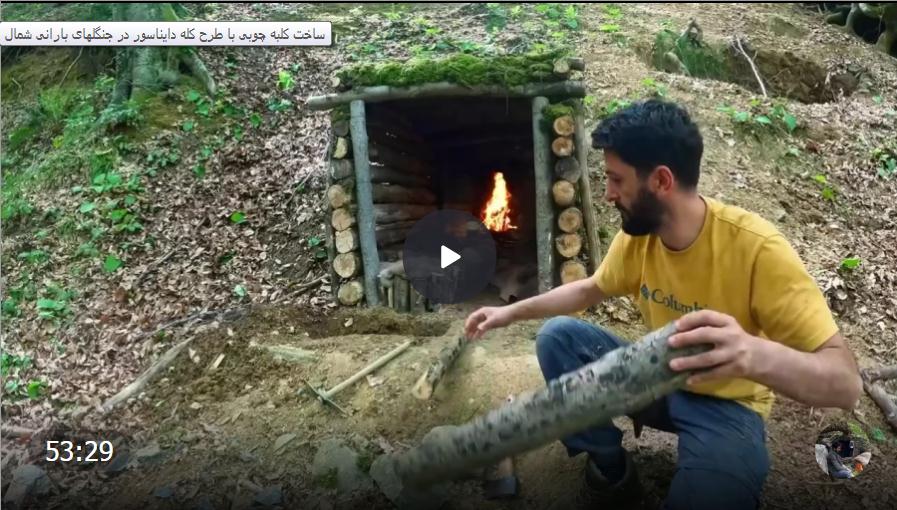 ساخت کلبه چوبی با طرح کله دایناسور در جنگلهای بارانی شمال