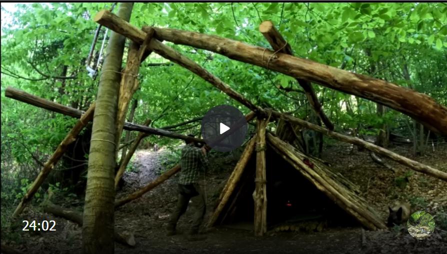 کمپینگ در جنگل با سگم و ساخت کلبه چوبی سرخپوستی