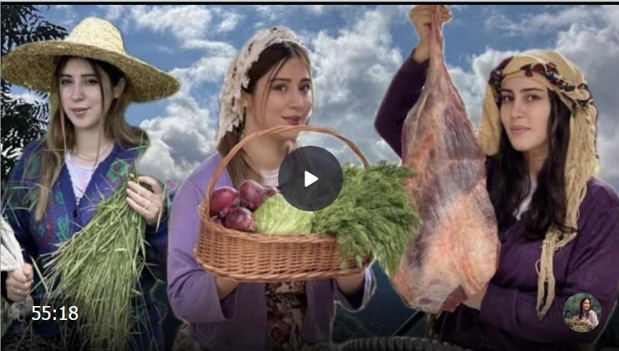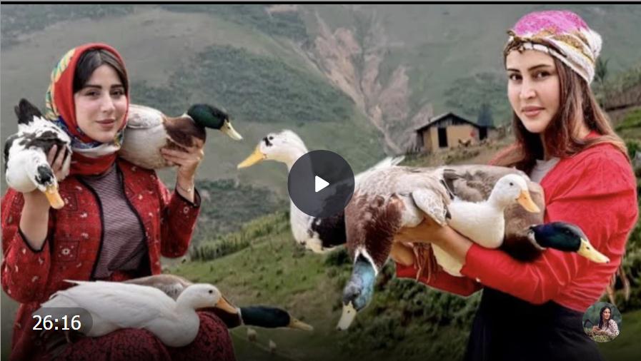 پخت خورشت گوشت در شومینه و سیل بردن کلبه چوبی دختران روستایی
