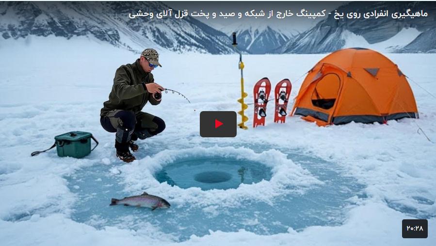 ماهیگیری انفرادی روی یخ – کمپینگ خارج از شبکه و صید و پخت قزل آلای وحشی