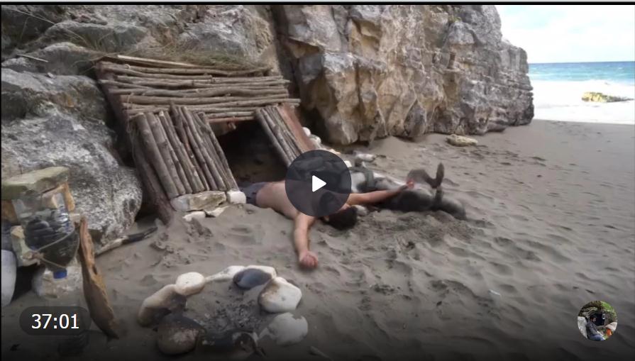 کمپینگ و ساخت پناهگاه در غاری در ساحل بنود خلیج فارس بدون آب و غذا